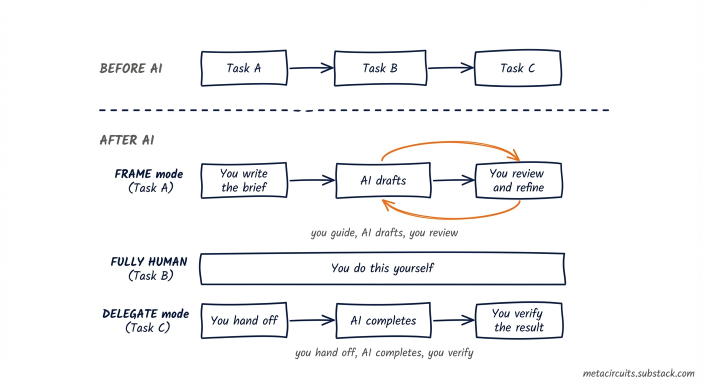 The meta-skill isn’t mastering a specific AI tool. It’s learning to delegate effectively.