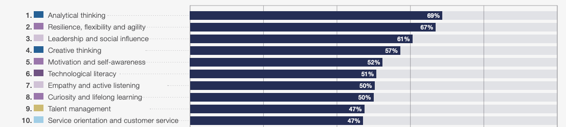 Plus, analytical and creative thinking are still ranked much higher than technological literacy on the job market, so by becoming too AI dependent you’d be conveniencing yourself out of a job.
