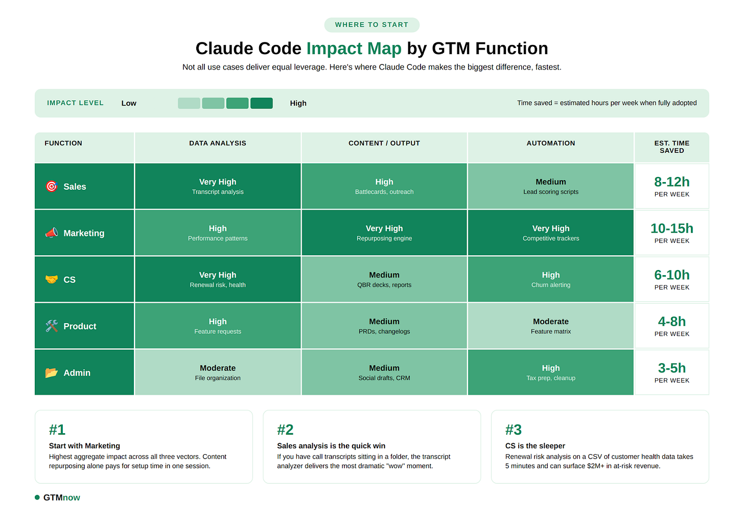 The GTM Newsletter documented a more specific approach for marketing teams: a CLAUDE.md packed with voice guidelines that auto-loads at session start, ensuring every piece of content sounds consistent. One webinar transcript goes in—blog post, Twitter thread, LinkedIn posts, email subjects and an executive summary come out, each saved to its own folder.